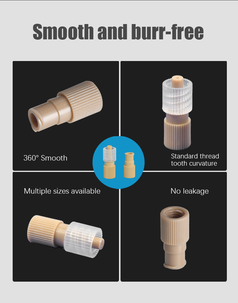 PEEK luer adapter is designed to adapt luer connectors to 10-32 UNF or 1/4-28 UNF threaded ports. The top advantage of PEEK luer adapter is that tubing will not rotate during tightening. It can withstand temperature range -100℃~+250℃ for a long time. PEEK luer adapter is suitable for standard 10-32UNF conical fittings or 1/4-28UNF flat bottom threaded fittings.