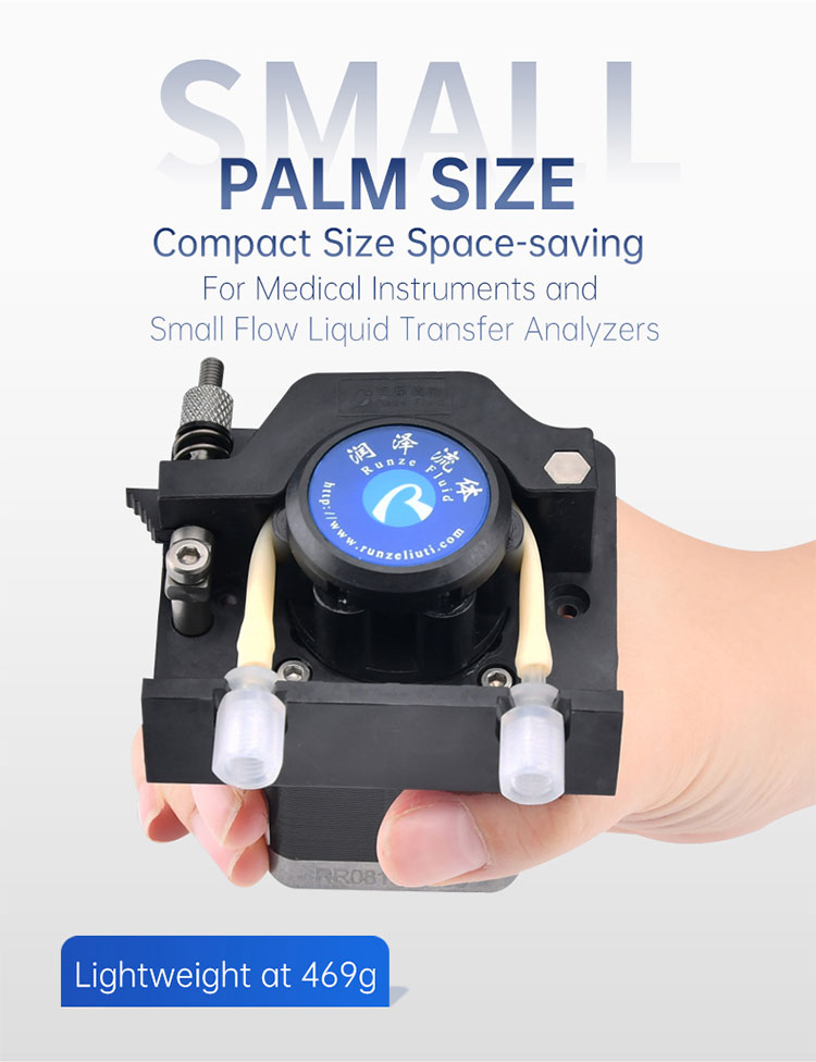BJ-RZ-02 is a new product in the series of small stepper motor peristaltic pump, it was composed of high precision stepper motor to achieve reliable performance on small flow rate transfer and spring mounting clips to achieve fast tube replacement and small footprint make it very popular in compact space-saving instrument to dispense few milliliter fluids.